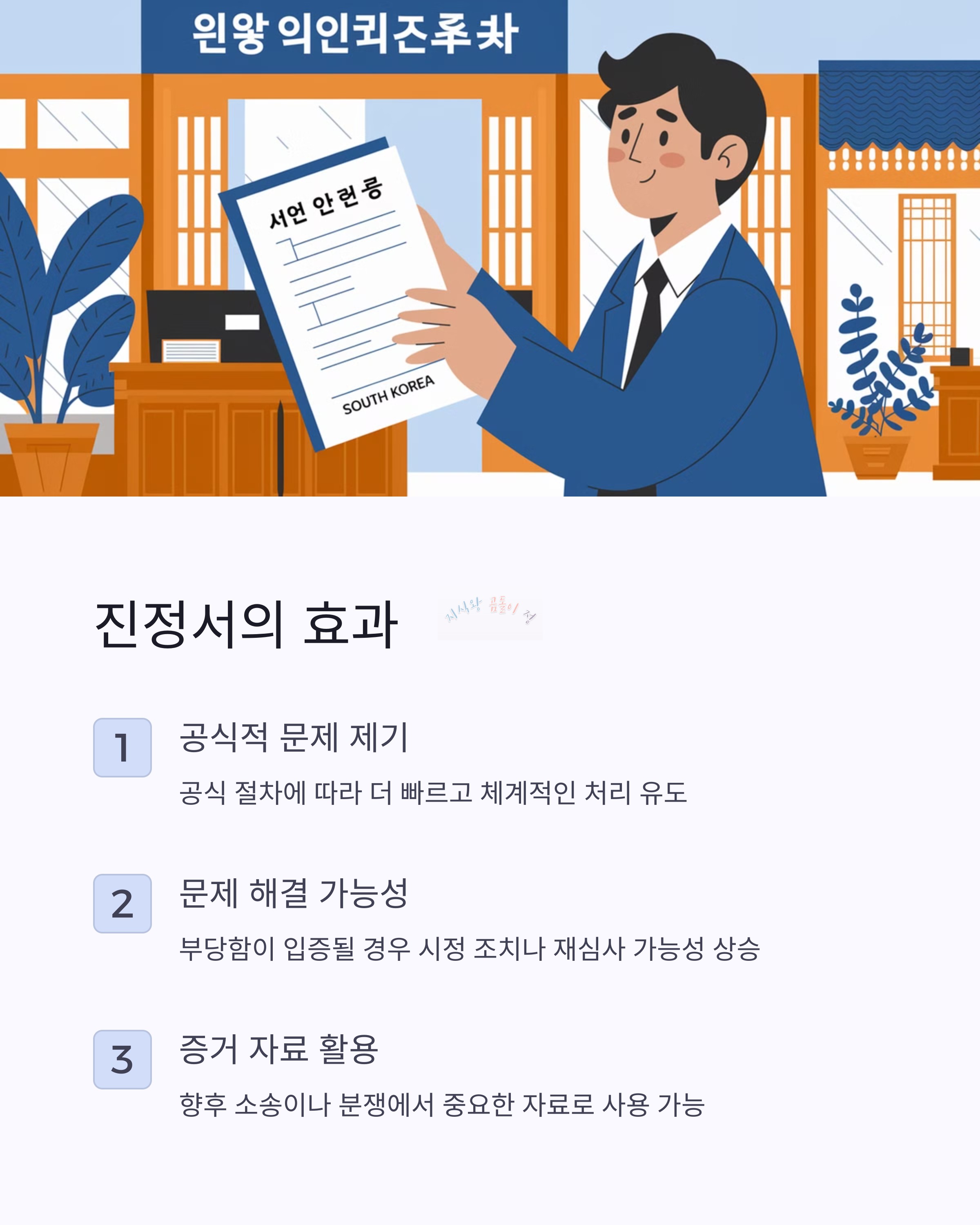 - 문제 해결의 가능성: 부당함이나 억울함이 입증될 경우 시정 조치나 재심사를 받을 가능성이 높아집니다.