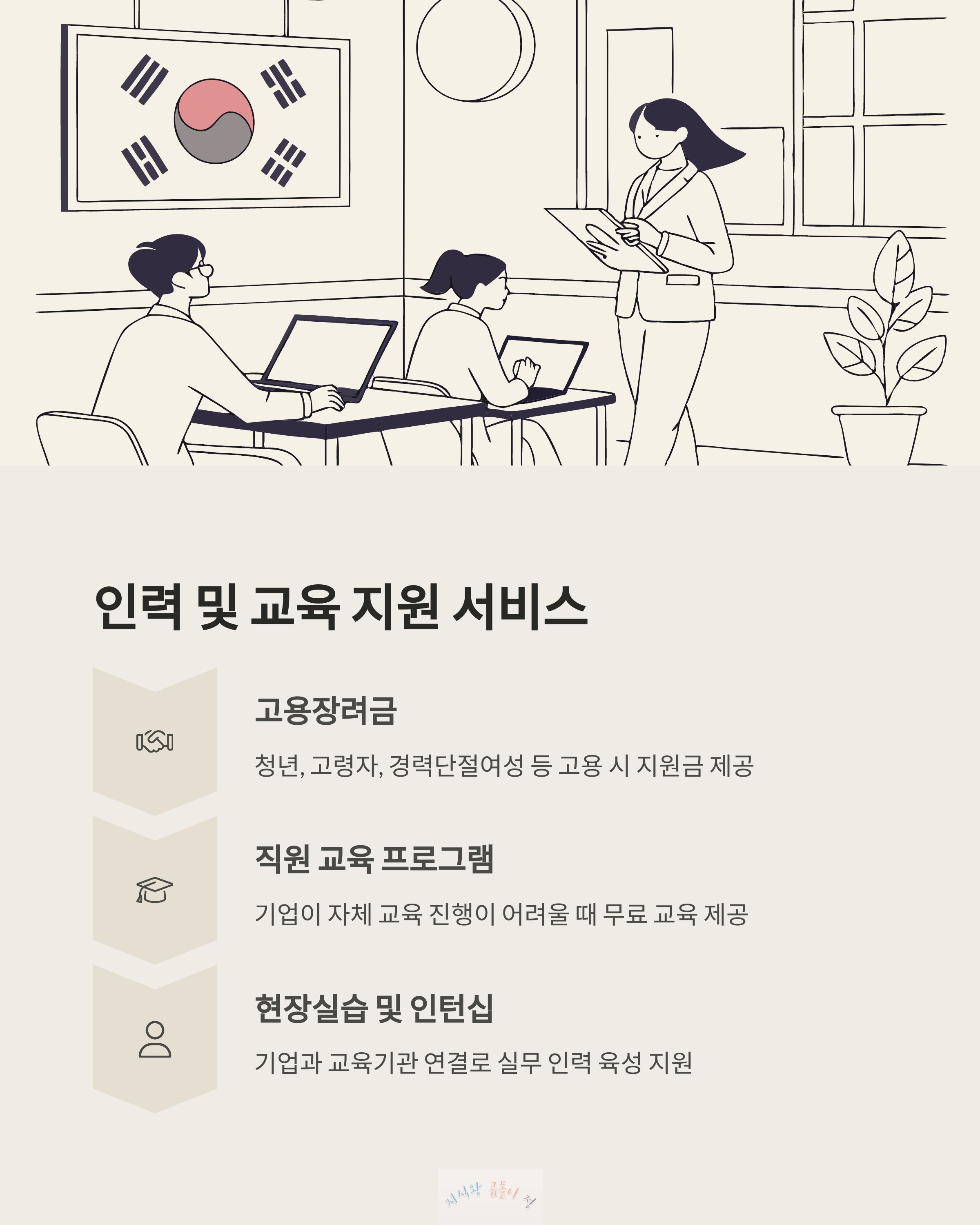 - 직원 교육 프로그램: 기업이 자체적으로 교육을 진행하기 어려울 경우, 정부가 무료 교육 프로그램을 제공하기도 해요.