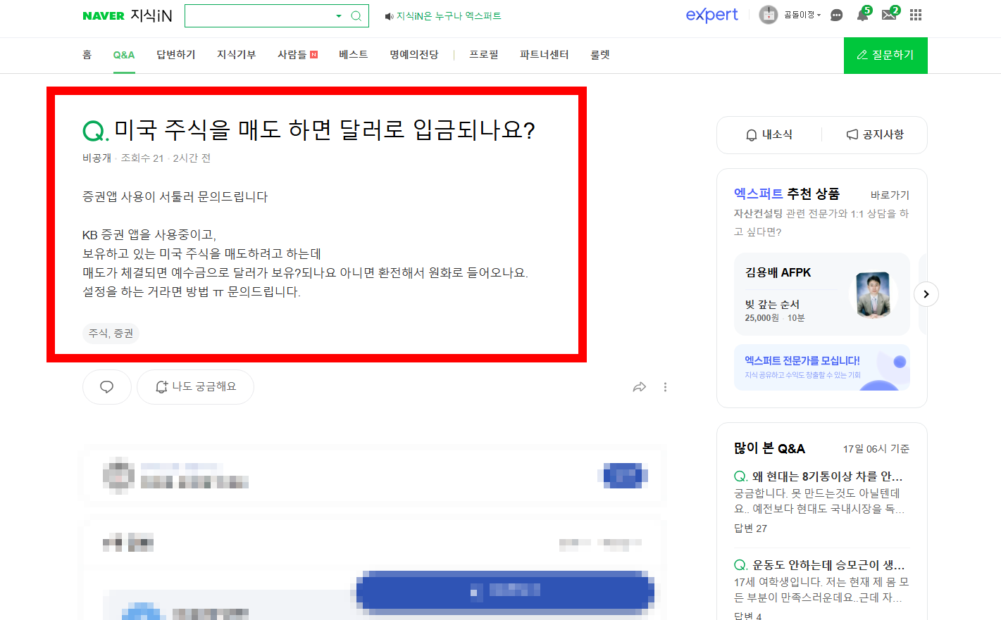 미국 주식 매도 후 달러 입금 및 환전 방법 (KB 증권 기준)